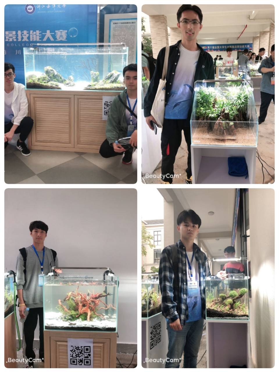 比赛中,同学们运用自己的专业知识与应变能力,在有限的时间里用有限的材料创造出了一个个优秀的作品。期间,各组同学在完成自己的作品后,互帮互助,交流思想,互相提出建议和构思,协助完成水草种植、水泵安装、景观设计等造景操作。最终,海洋学院代表队取得了二等奖1项、三等奖3项的好成绩。赛后,通过与来自全国各地学校的学生们交流经验,互相学习,提升自我,为海洋学院未来的参赛积累了宝贵的经验。
