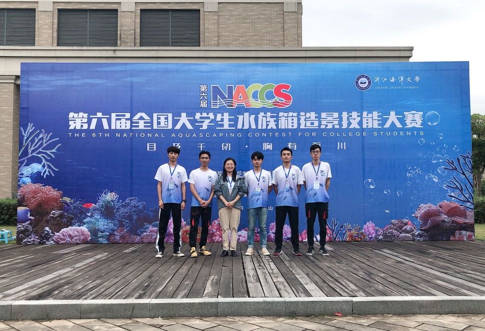 为了进一步增强海洋学院特色专业的竞争优势,提升在全国范围内的竞争力及影响力,开阔学生眼界,强化专业素养,促进与兄弟院校在海洋文化方面的交流,10月11日—14日,海洋学院海洋资源开发技术专业海洋生物资源养护与开发方向2017级的5名学生(张晟铭、苏振杰、李鸿霖、史朕嘉、侯宗浩)组成的代表队,在柳瑶老师的带领下,前往位于浙江省舟山市的浙江海洋大学,参加了第六届全国大学生水族造景技能大赛。