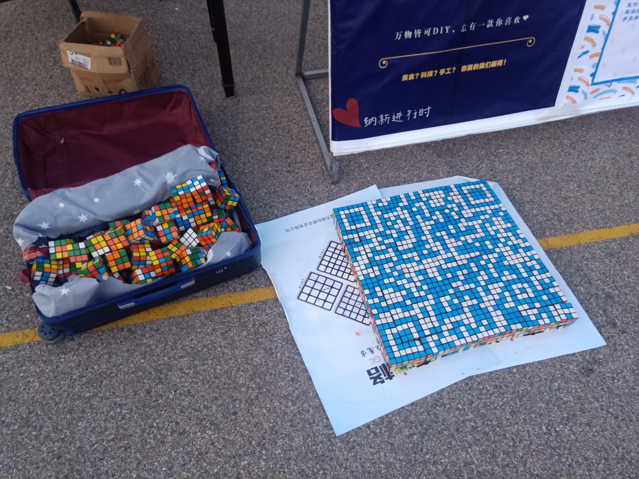 在工作人员的协助下,协会成员将各式各样的魔方、小礼品等摆放整齐并用三阶魔方拼摆出协会的二维码,吸引了同学们前来了解魔方协会的基本情况、入社要求及流程,并和协会成员们共同探讨魔方的玩法等相关知识。本次纳新还吸引了哈尔滨工业大学(威海)及威海一中的魔方爱好者前来进行沟通交流,互相切磋。整个纳新现场气氛活跃,井然有序,经初步统计,本次纳新一共招纳各学院同学126人。