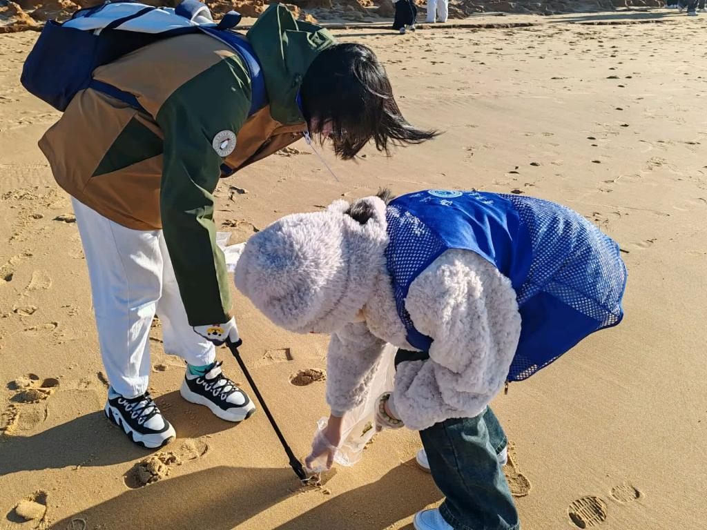 活动前期,协会负责人对志愿者进行了集体动员,讲解了活动的目的、内容及注意事项,包括垃圾分类和沙滩保护等相关知识,并向志愿者分发了垃圾袋、夹子、手套等必要清理工具。志愿者们被分成若干小组,按照指定区域开展清扫工作。活动组织有序,现场秩序良好。威海国际海水浴场沙滩上的垃圾以塑料制品为主,包括塑料袋、饮料瓶和烟头等,部分垃圾因长期暴露在外,已与沙子混杂在一起,清理难度较大。志愿者们认真细致地使用工具逐一清理,并将可回收与不可回收垃圾进行分类处理,确保垃圾处理的规范性。随后,志愿者们转至金沙滩海水浴场继续开展清扫工作。经过两个半小时的清理工作,共清理垃圾15袋,其中以塑料垃圾为主,还包括玻璃碎片、金属制品等。此外,志愿者还回收了部分完整贝壳,用于后续环保工艺品的制作。活动结束后,志愿者纷纷表示,看到自身劳动改善了沙滩环境,减少了海洋污染,内心充满了成就感和满足感,以后会积极参与环保公益活动,将个人行动汇聚为保护地球环境的共同力量。